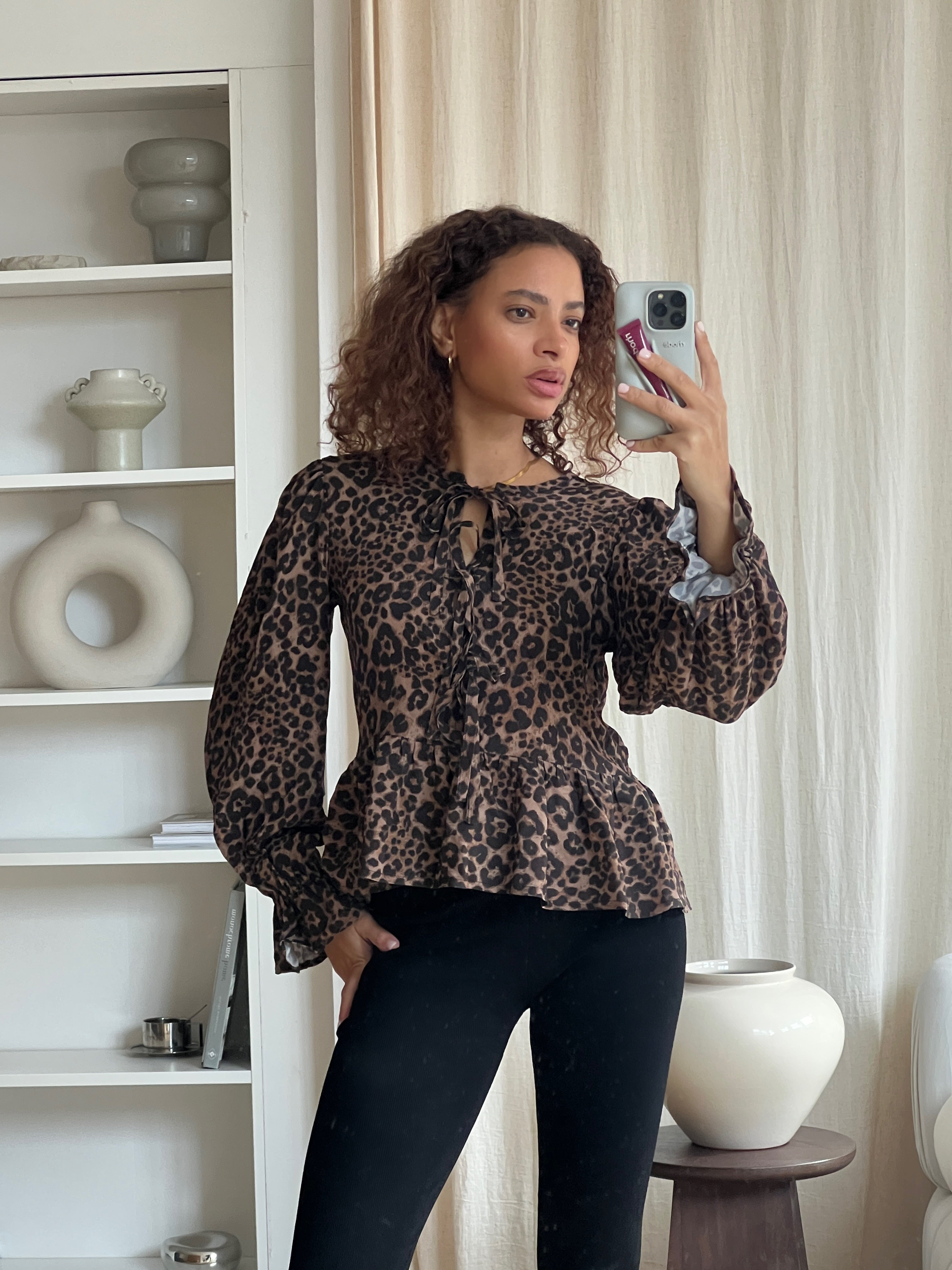 My bestselling Eve Blouse has been reimagined in a sophisticated leopard print. Featuring three delicate front ties that fasten into soft bows, it is effortlessly polished while easy to wear. Endlessly versatile, Eve brings a quiet elegance to denim, tailored separates and everything in between.