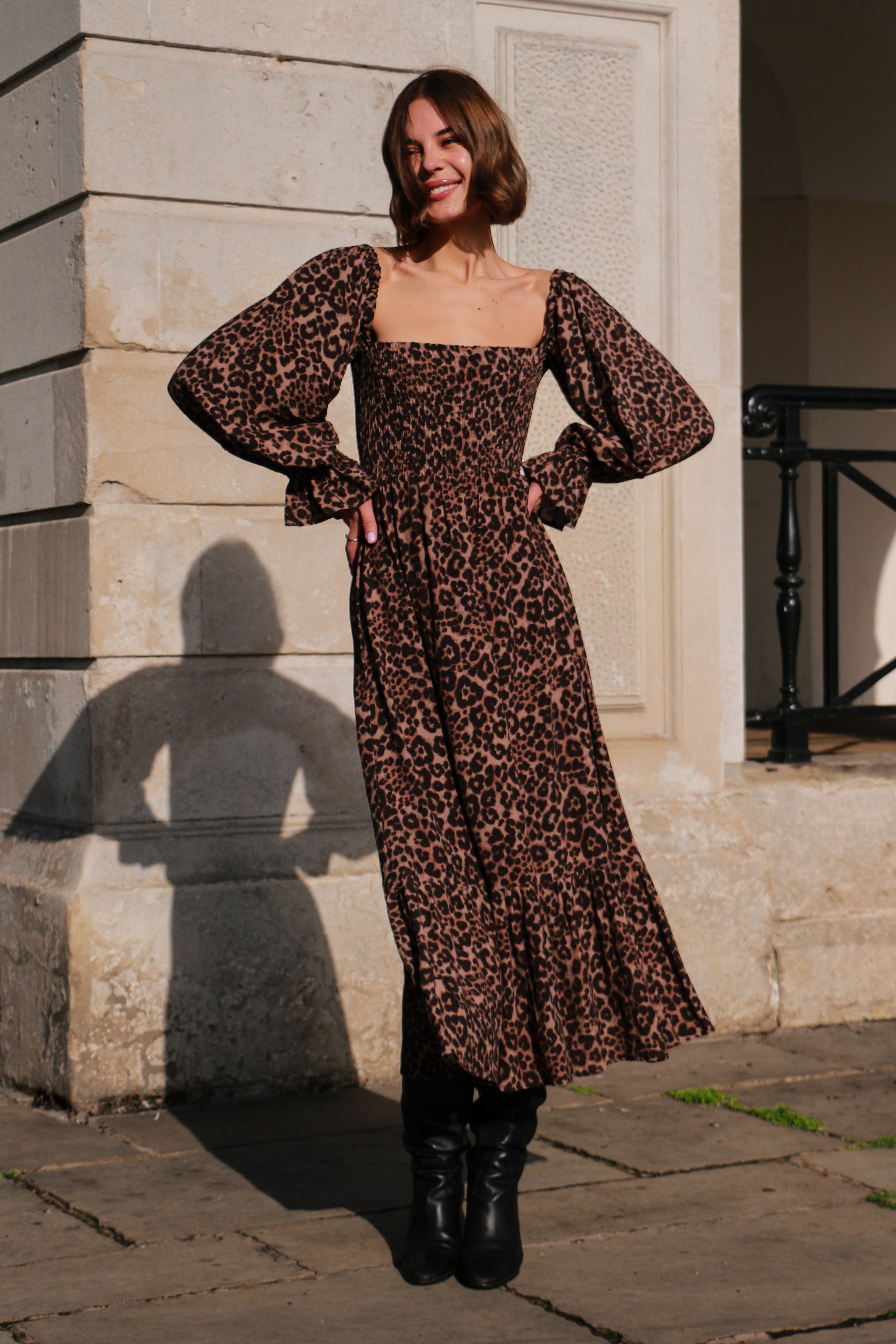 In soft, fluid leopard-print crepe, the Natalie Dress is the epitome of effortless elegance. With a shirred bodice and flowing skirt, Natalie flatters every figure beautifully, balancing timeless femininity with easy-wear appeal. Just pair with boots or heels for a chic look from day to evening.